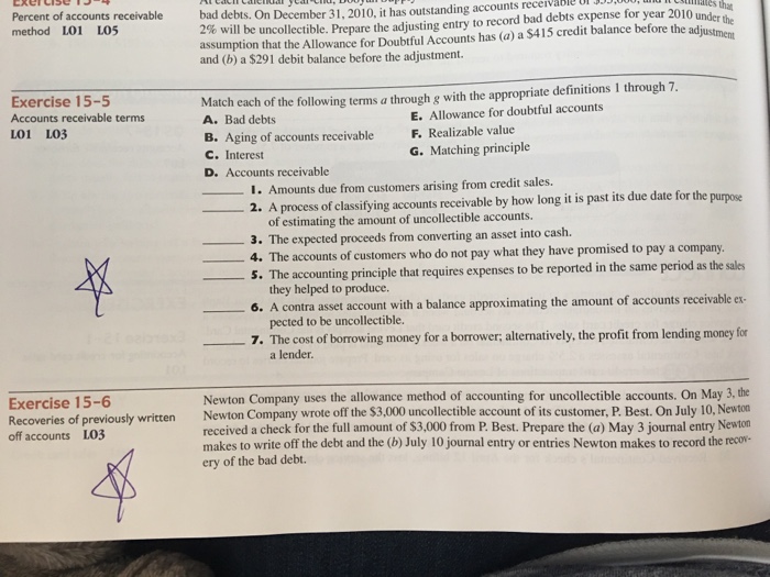 The allowance method of recognizing uncollectible accounts expense follows the matching principle of accounting i. e. it recognizes uncollectible accounts expense in the period in which the related sales are made. under this method, the uncollectible accounts expense is recognized on the basis of estimates. there are two general approaches to estimate uncollectible accounts expense. the first. Debit to bad debts expense and a credit to allowance for doubtful accounts an aging of a company's accounts receivable indicates that $4,000 are estimated to be uncollectible. if alowance for doubtful accounts has a $1,200 credit balance, the adjustment to record bad debts for the period will require a. Tanning company uses the percentage of receivables method for recording bad debts expense. the accounts receivable balance is $200,000 and credit sales are $1,000,000. an aging of accounts receivable shows that 5% will be uncollectible.